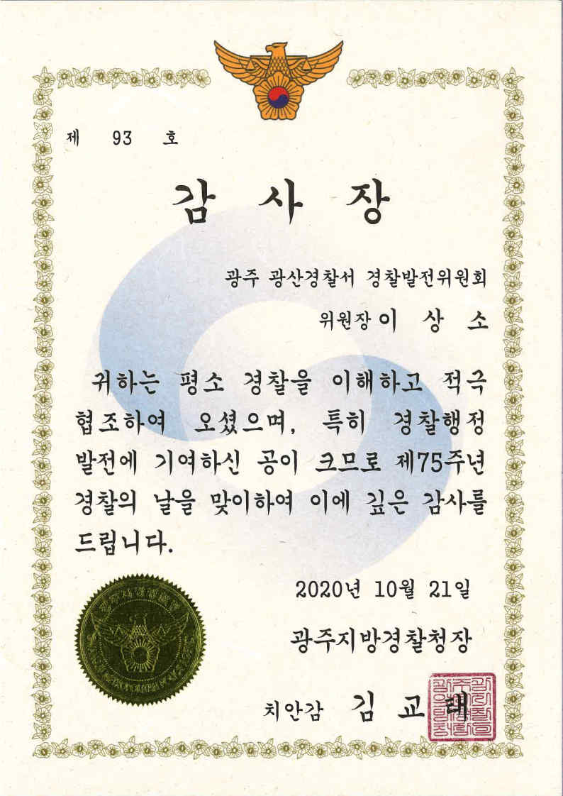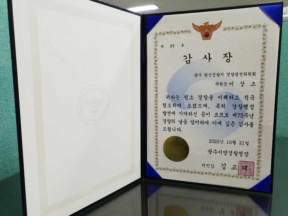 ÀÌ»ó¼Ò ÀÌ»ç °æÂûÀÇ ³¯ °¨»çÀå ¹Þ¾Æ(±¤ÁÖÁö¹æ°æÂûû)